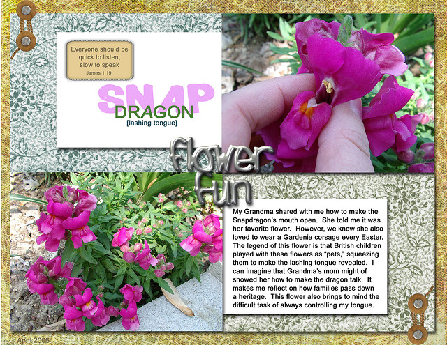 I made this layout in April of 2006, such a long time ago now. It is one in my garden analogy collection and reflects on my Grandma's favorite flower.