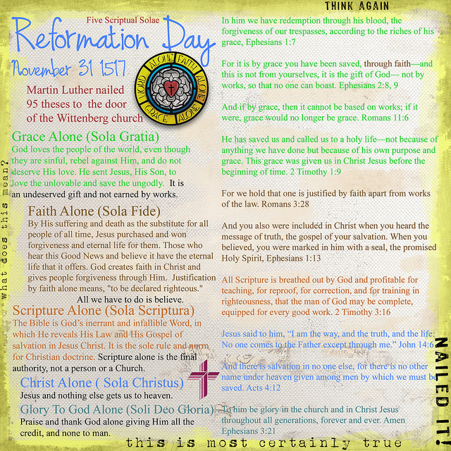 10/31/2015 Today is Halloween, but for me as a life-long Lutheran (LCMS) it is more important to spend time considering and remembering Reformation Day, which is the same day.