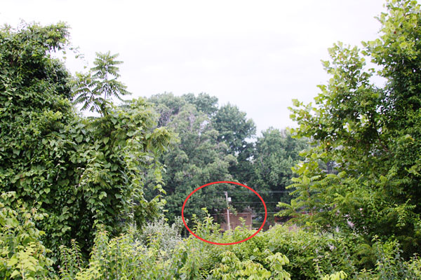Zooming in closer, this is what is currently the view that would have been behind the service station photo of 1961. We can only see our neighbor's house which is directly across from our house (this house not built in 1961 photo).