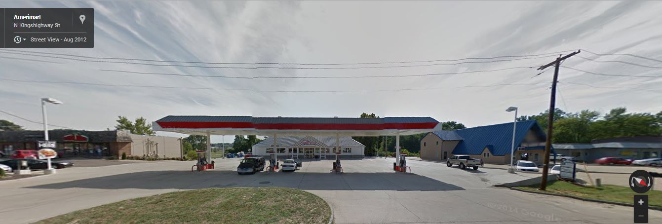 Now I believe is is where the current gas station is located, (image from google maps), but the address to this location is 865 North Kingshighway. The next building down the line (to the left) is the pizza place, but it is at 841 North Kingshighway, so I am left with "things change" and the address is no longer utilized.