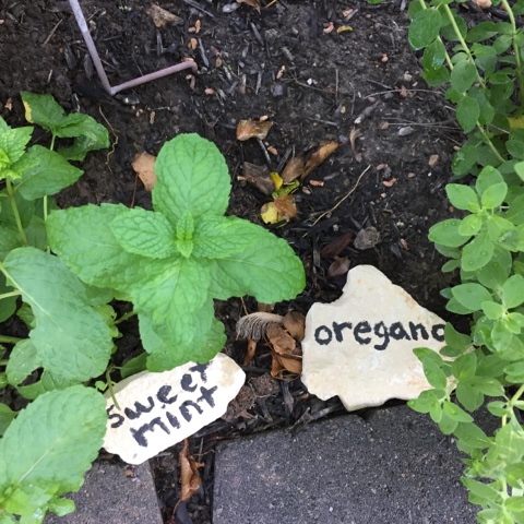 We picked up these fairly large stones at a lead mine where my ancestor worked; made garden markers with them. I did seven of them. I have six more rocks. Then I think I'm going to have to get more rocks. I love how they look in the flowerbeds. Free! Natural! Easy! Now this feeble old mind does not have to remember the names of everything. Well, I have to remember it at least once more so I can put it on the stone! Maybe we can find some more rock when we go river wallowing.