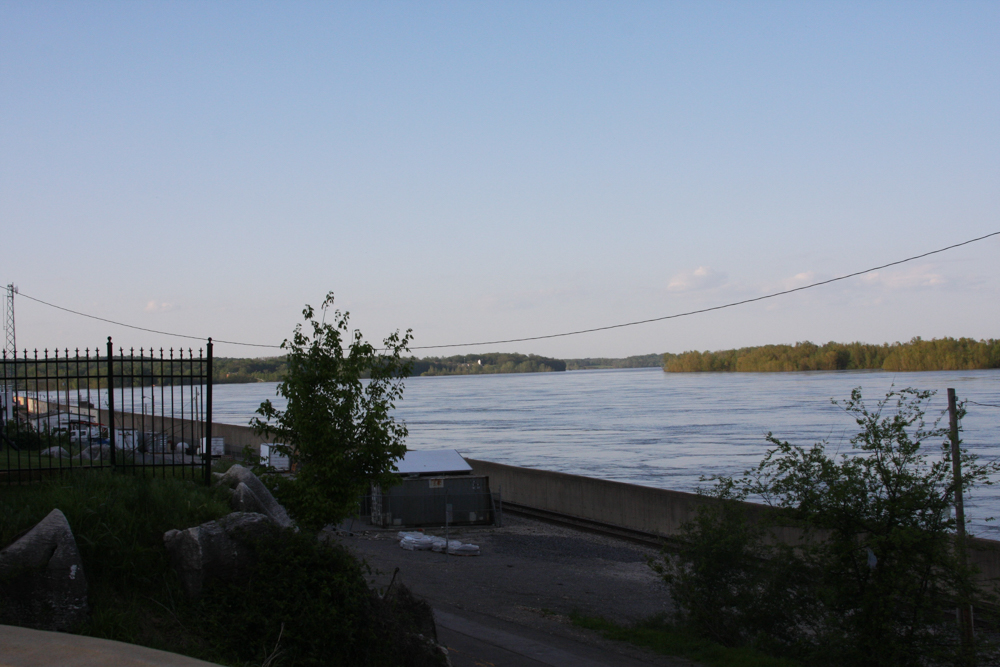 These two photos are of the flooding of the Mississippi River in Cape Girardeau. You can see how high the water is below the bridge with not much room for a barge to go under.