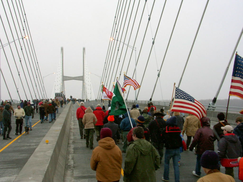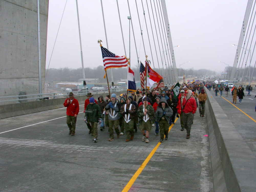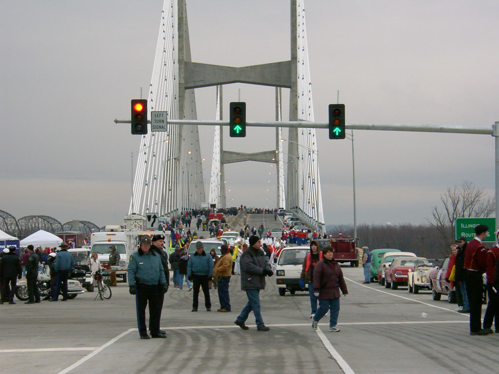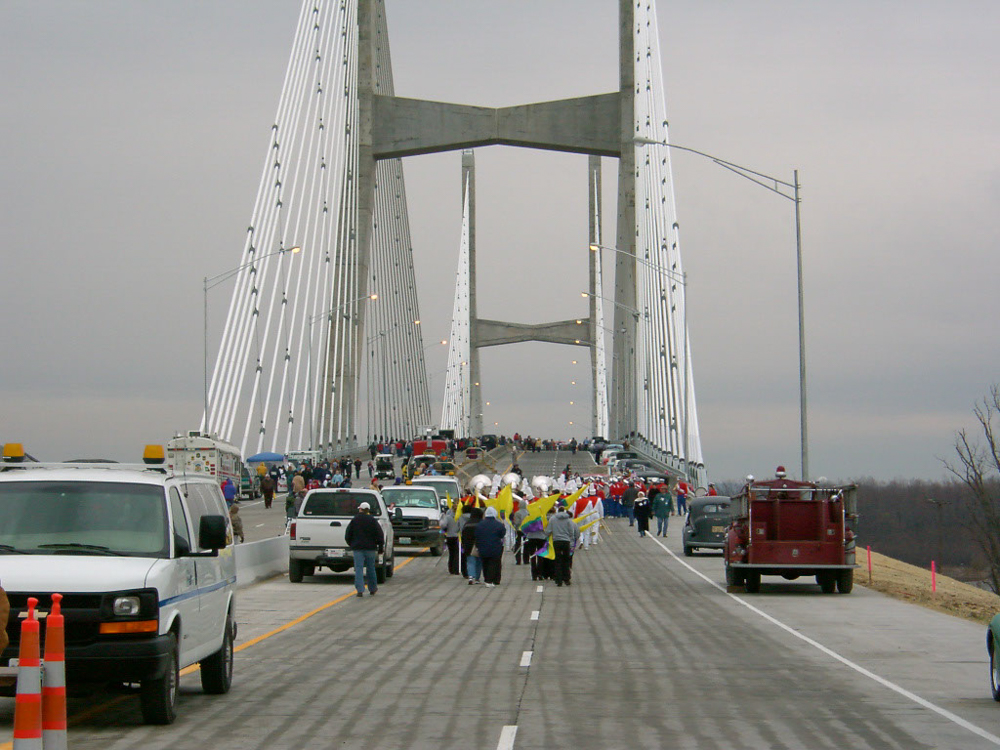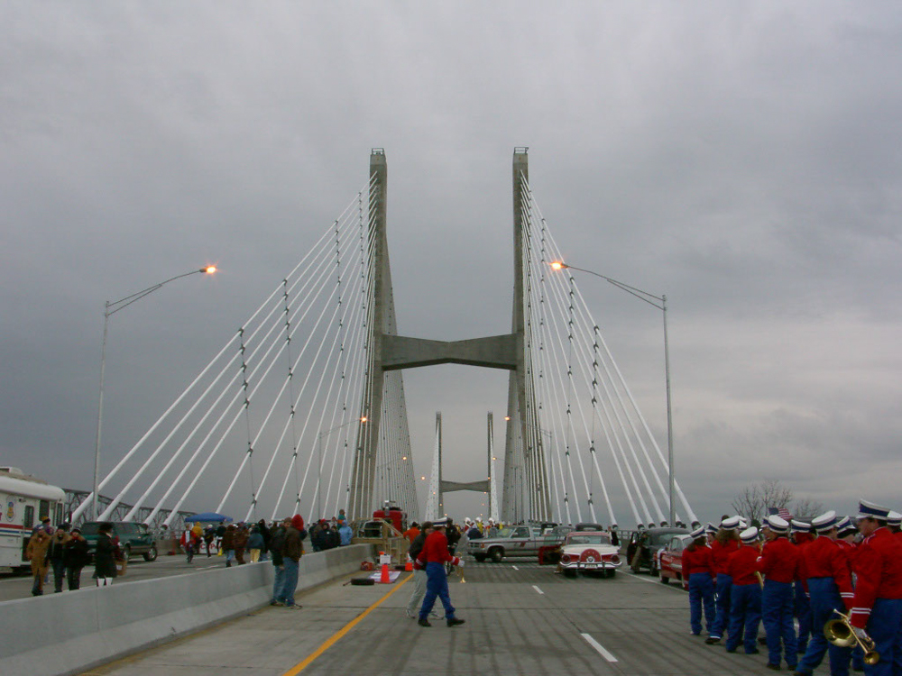 The Bill Emerson Memorial Bridge was opened on December 13, 2003, and my oldest son crossed the bridge during the opening ceremony with the Cape Central Marching Tigers and my two younger sons crossed the bridge with Boy Scout Troop 11. I crossed all the way with the boy scouts, but did focus on taking photos. The above slideshow are my photos. Of course, this is 2003 and camera technology was not the same as it is today, but still yet I am thankful for the photos and the ability to share them. The bridge is named after Bill Emerson who served in the U.S. House of Representatives from 1981 until his death in 1996. Planning for the four-lane structure began in June 1987 and construction began in late 1996. The bridge connects Cape Girardeau, Missouri, to Southern Illinois.