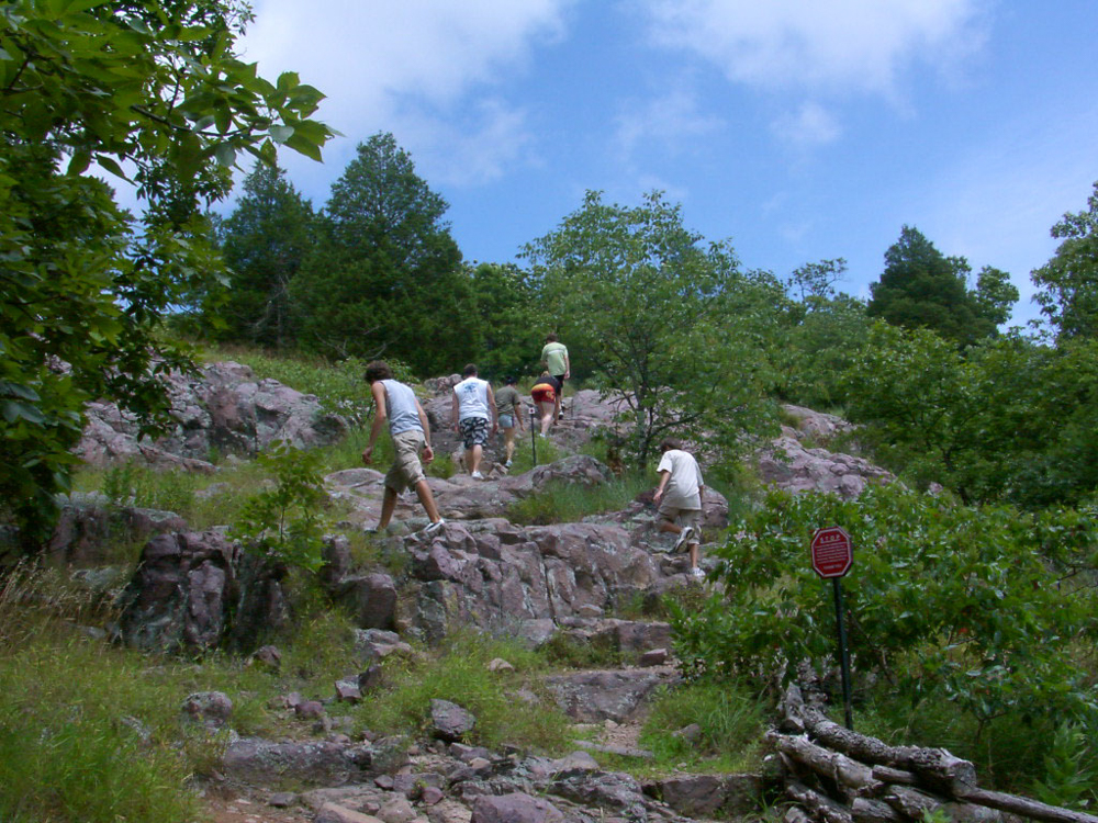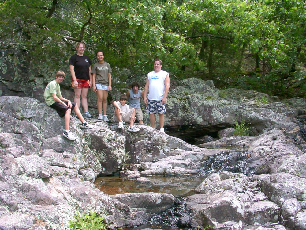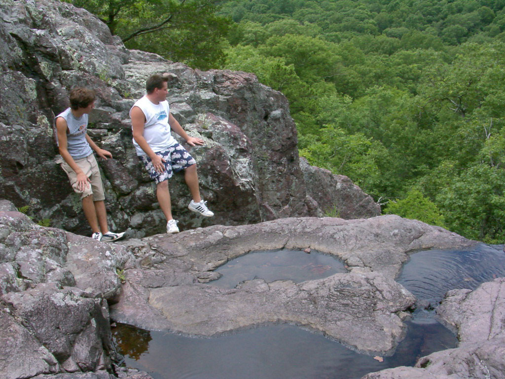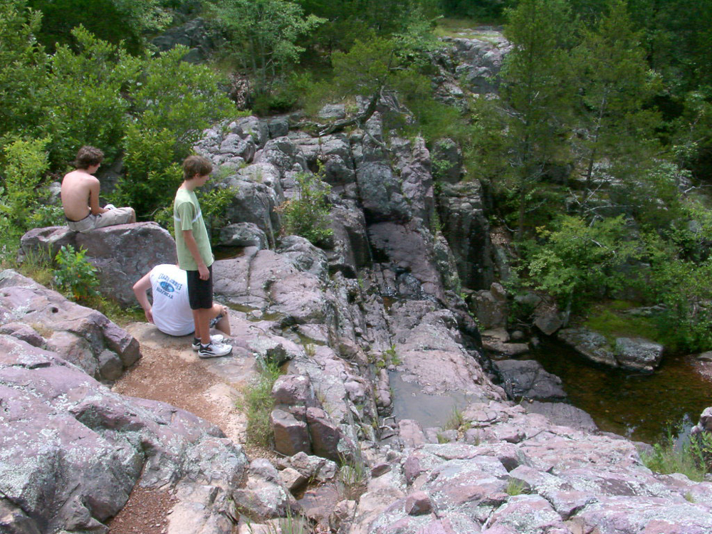 We have been to Taum Sauk Mountain State Park, Iron County, Missouri, several times, but I found photos for two of those times. Both times we walked on the Mini Sauk Falls Trail. The cool thing about Taum Sauk is that it is the highest point in Missouri, although you wouldn't know it when there as it feels rather flat on the mountaintop. The trail is 2.9 miles which is at the top range of my physical ability and every time I've done this trail, I feel like I can barely make it out. I think our sons were young the first time we did it and we arrived close to dusk and it was dark before we got out and I remember that creeping me out like some forest animal was watching us.