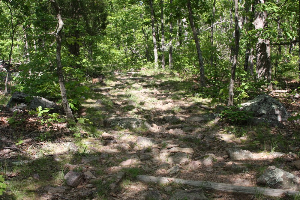 The trail is rocky and difficult to walk on almost the whole way.