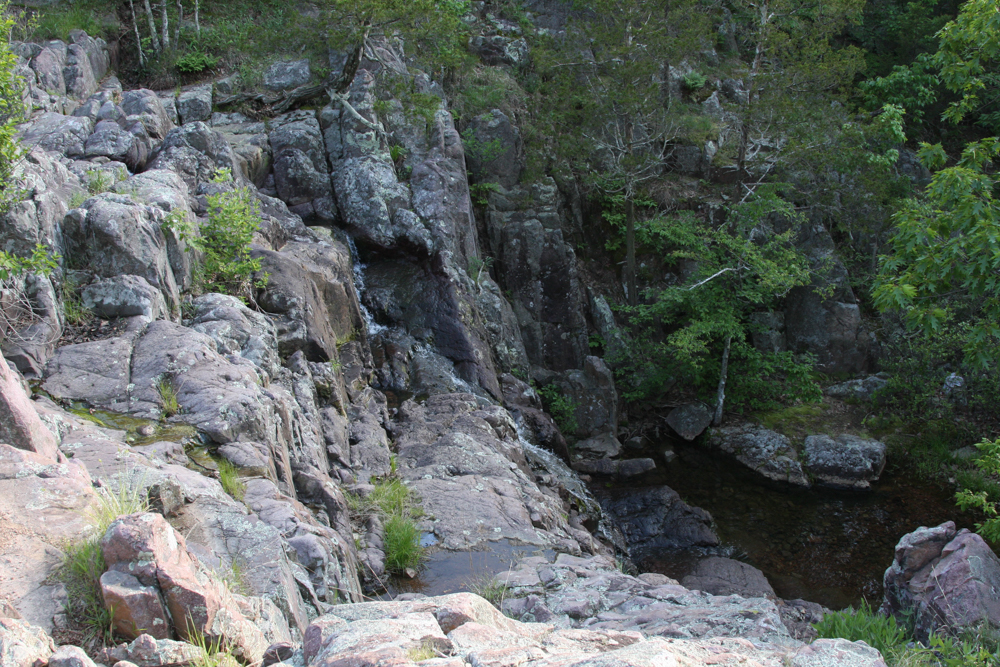 This is Mini Sauk Falls. In the summer months it does not run as much as it does after a Spring rain.