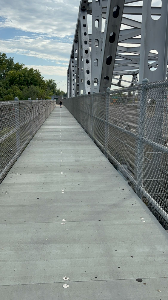 Until I went so far that the whole trail under my feet and the fence was shaking viciously. How in the world do people walk on that! I can see riding and maybe not feeling it, but it was really scary. It was not a light vibration. It literally felt like the concrete under my feet my crumble under the pressure of an earthquake! I had to eventually stop and go back. He continued across the bridge. Uh, no! I’ll wait to watch the new for the walkway to collapse some day.