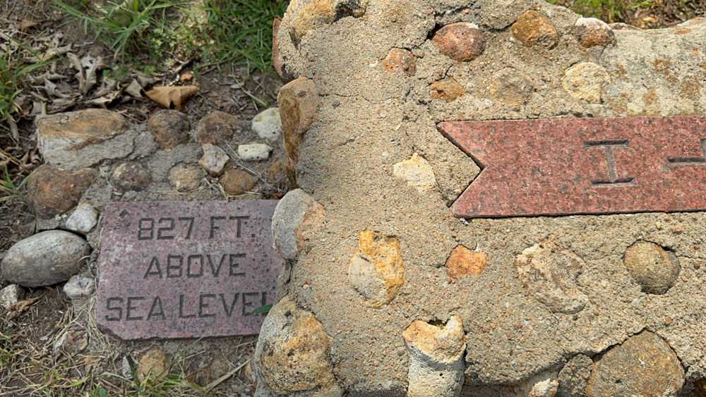 This place is 827 feet above sea level. There is also an arrow pointing toward the north, which goes the same direction as the river is flowing.