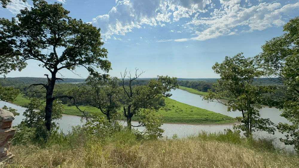 The Osage River is the wide one on the right and the Sac River is coming from the left. The rivers are actually the only rivers in Missouri flowing North! I learned that later when I saw a diorama at the Harry S Truman Dam and Visitors Center, so you can watch that video on my website page. I learned that this whole system of man-made dams and lakes is to keep the Lake of the Ozarks from flooding.