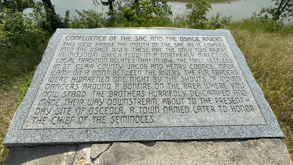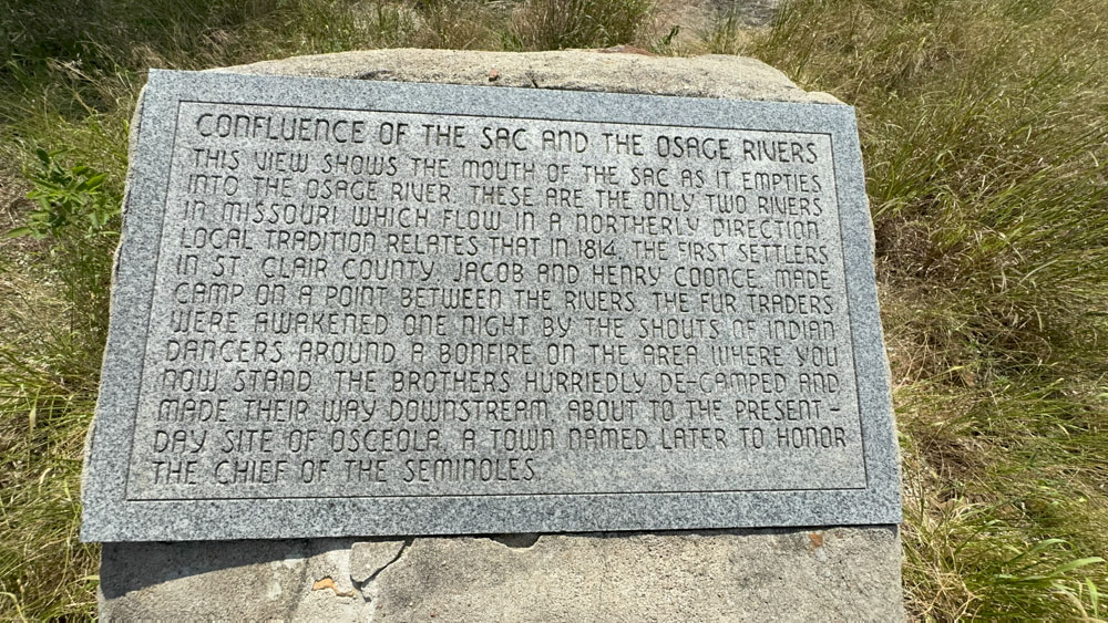 The Sac and Osage River Confluence is a roadside park in St. Clair County, Missouri, not far from Osceola.