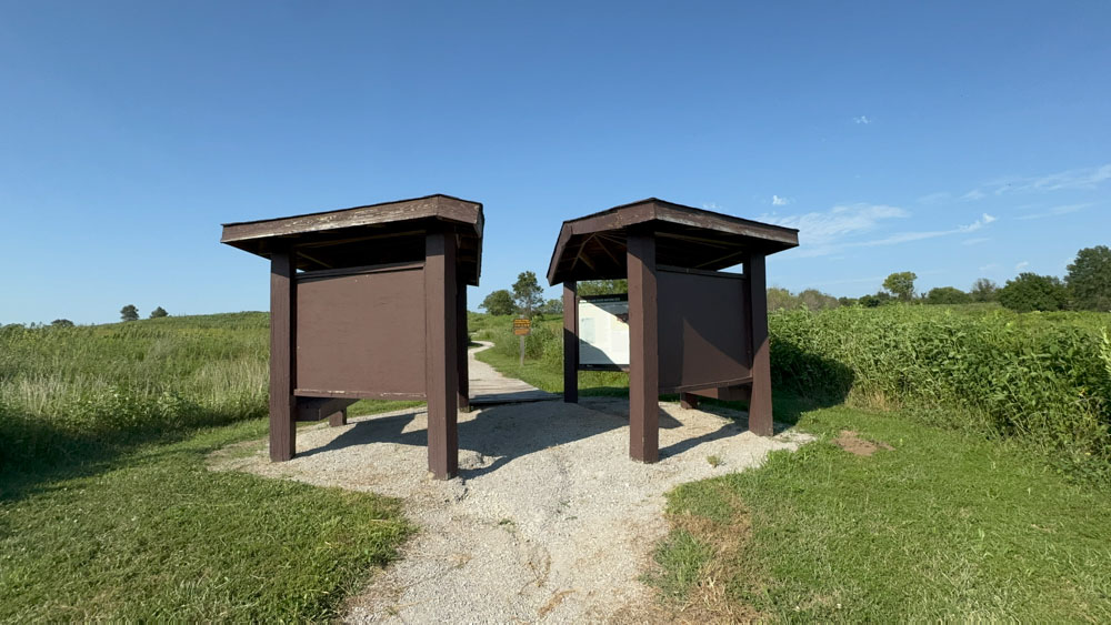 I found this kiosk to be interesting. There is a "Blue Mound" that can be seen in the distance, which is actually on private property and not part of the state park.