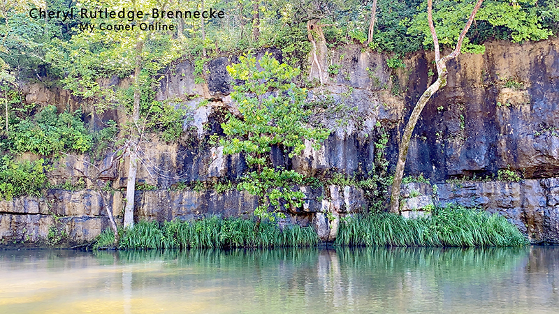 I loved this patch of grass along the cliffs. However, I did not love it when we discovered that was where the copperheads resided. A floater pointed out the baby copperhead following her canoe. The night before at dusk, when we began to walk the dogs along the shoreline, an extremely large snake came swiftly across the water as if it was going to attack us. I think it thought my 8 lb dog was dinner. We picked up the dogs and walked away from the water and it turned away. I suppose it was disappointed we took its dinner. So the next day when the baby copperhead was spotted, we knew what kind of snake the one the night before. We sat and watched the snakes going in and out of the above grass. We wondered how all the day use people could swim here every day and not be bothered by them.