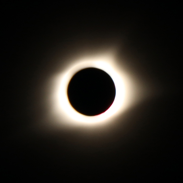 These are some of the photos during the total eclipse. I failed to reset the focus after taking off my solar filter, so I believe they could have been better. However, I can see a red ring on some of them. With a 135mm lens not able to zoom in close enough, I am happy with my feeble results.