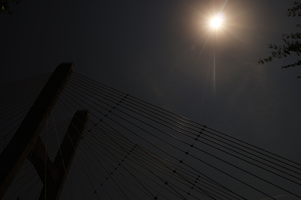 I decided to attempt to capture some images of the eclipse at the Bill Emerson Bridge. Immediately before totality first a barge came by and then a train. Of course, we with the all important tripods would never have anticipated the ground shaking train just a few moments before totality. I had to laugh because life always throws surprises at us.