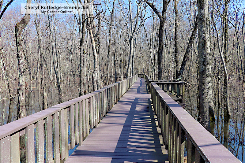We visited on February 29, 2020, and even in the Winter weather we enjoyed the Refuge. I would think it changes constantly throughout the seasons. The boardwalk is literally like walking on water! It is quite intimidating, at least for me, as I am aware of the snakes that live in the water. Just in front of the side viewing area in this photo is where we saw a very large turtle. I only saw it well for a few moments before it began to sink down to the bottom of the water. We could still see it, but not very well, and waited a long time hoping it would come back up. Apparently turtles can hold their breath for a very long time. I still want to know the answer to that question.