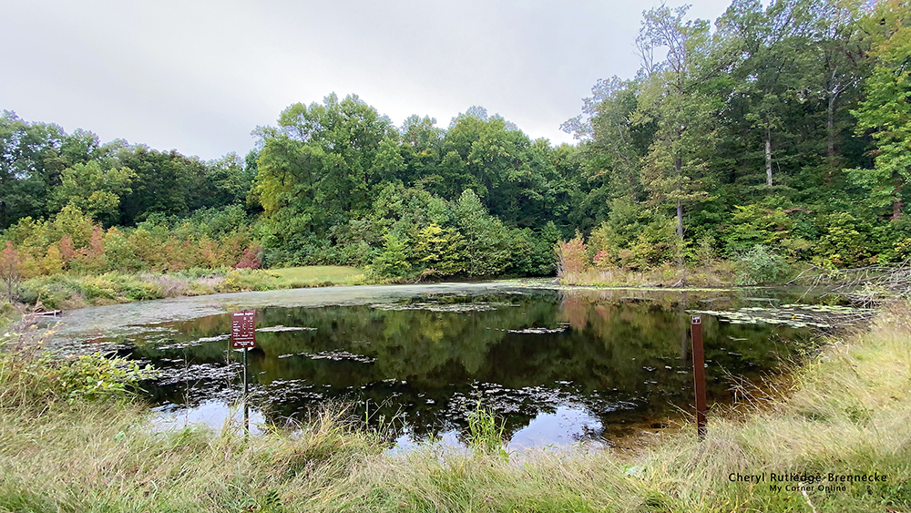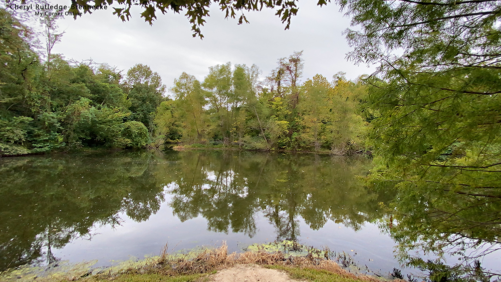 There are two lakes at Schlosser Loop Trail great for fisherman. The trail is 1 1/2 miles long. I do not like to fish, but I do enjoy the reflections of trees in the water. We parked at parking lot A, although we did find some of the parking lots renumbered from old maps to newer maps. This is Lake 1.