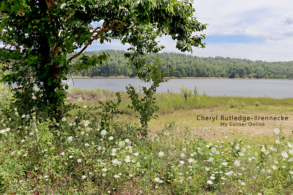 The lake seemed a great place for a quiet fishing spot for those who like to fish. This is a view looking to the left of the parking area. I enjoyed walking around the grassy area at the end of the parking area because the view was ever changing with the beautiful St. Francois Mountains and the blue sky.