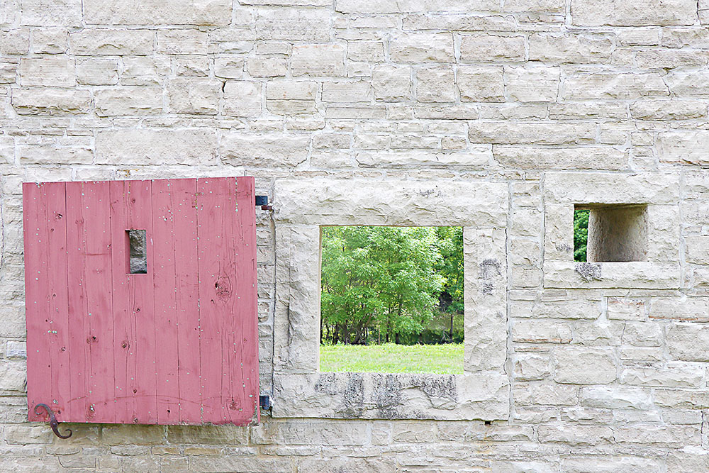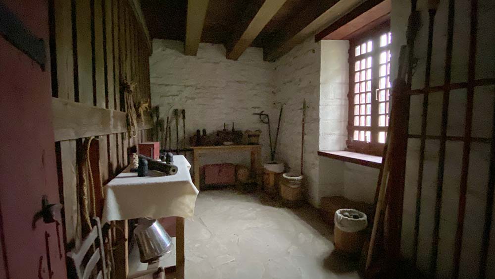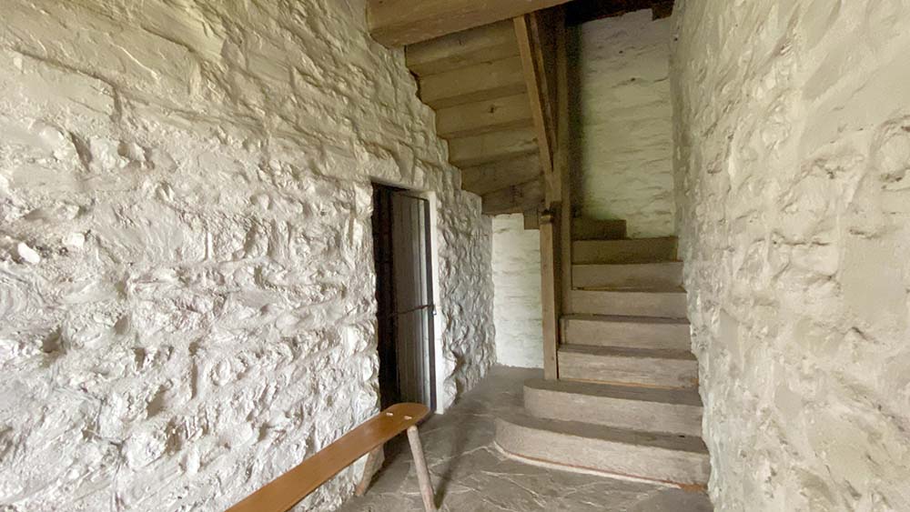 Looking out a window at the entrance area and how they would have had a view to shoot should there have been a battle.
