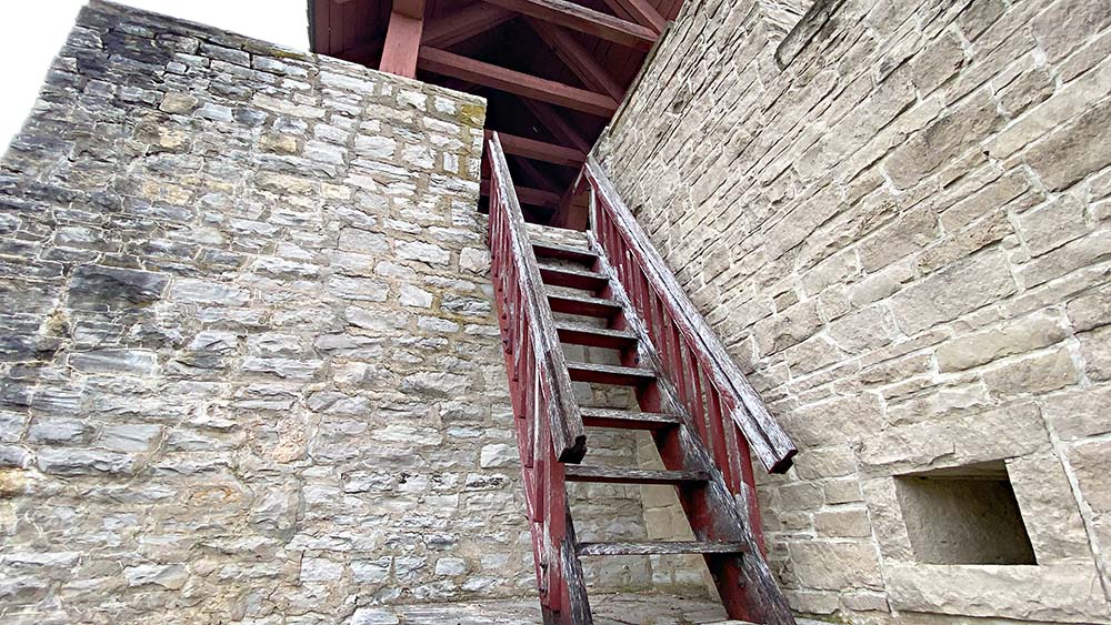 After walking up the steps to the corner tower, turning around looking back into the fort.
