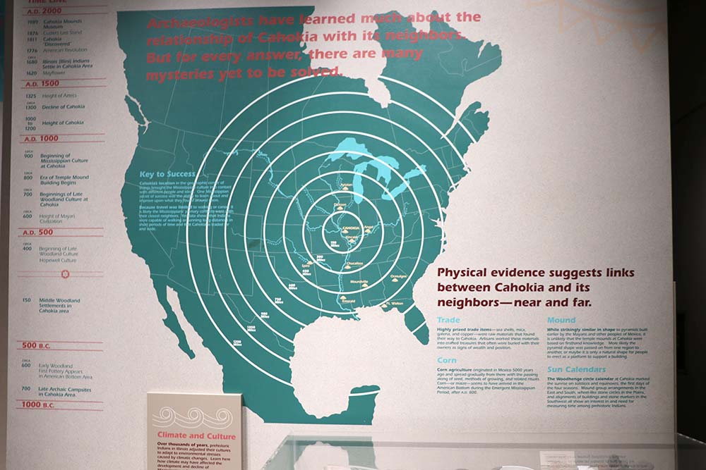 This shows how far reaching Cahokian Indians were at the time. There is evidence of them trading and communicating with other Mississippian Indians far away. It is amazing to think of how far they traveled with only horse at that time.