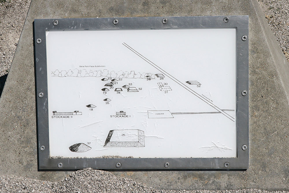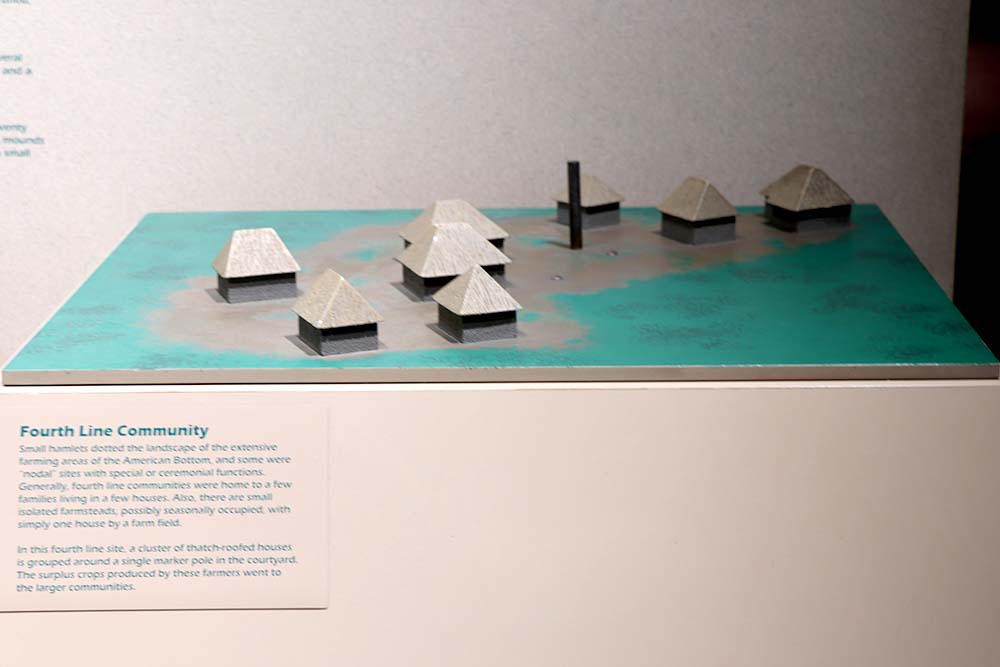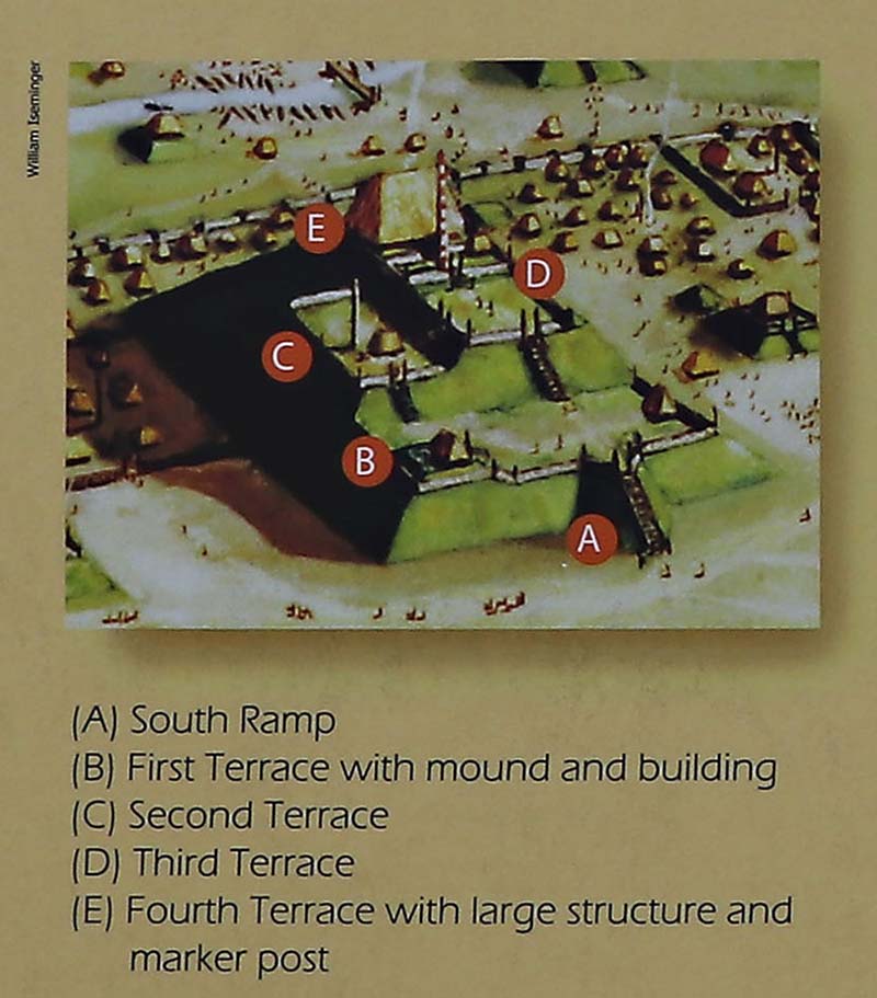 This sign in the museum shows what it looked like in an illustration from 1873 Madison County atlas and shows the home of TT Ramey atop Monks Mound. The National Road, known locally as Collinsville Road, is in the foreground.