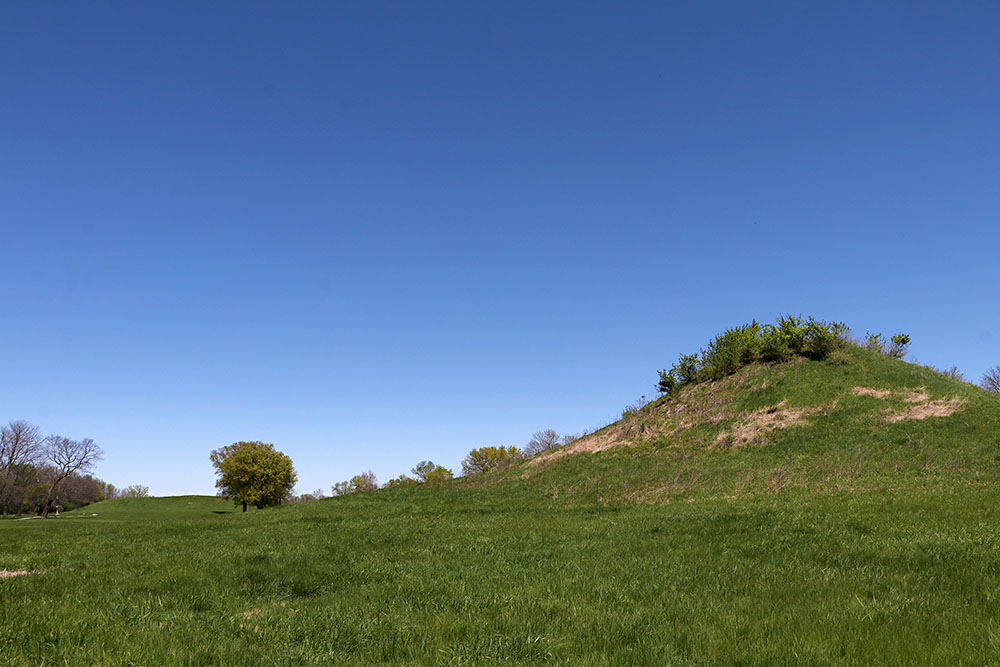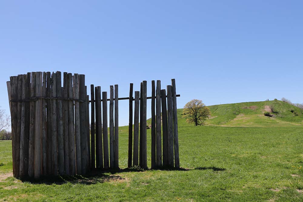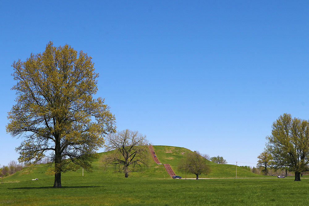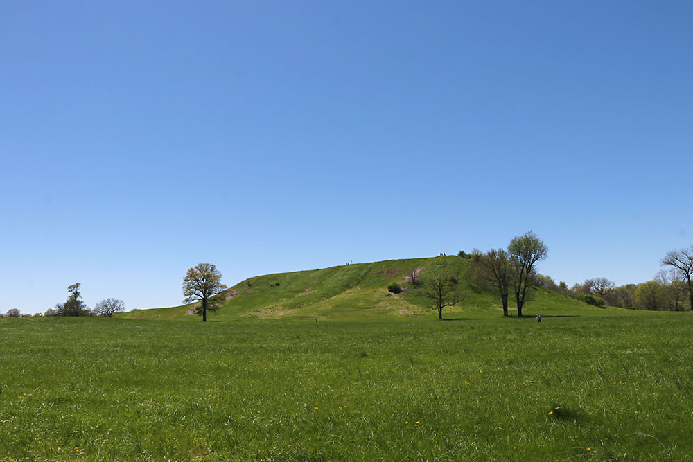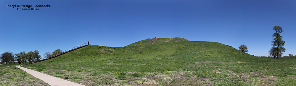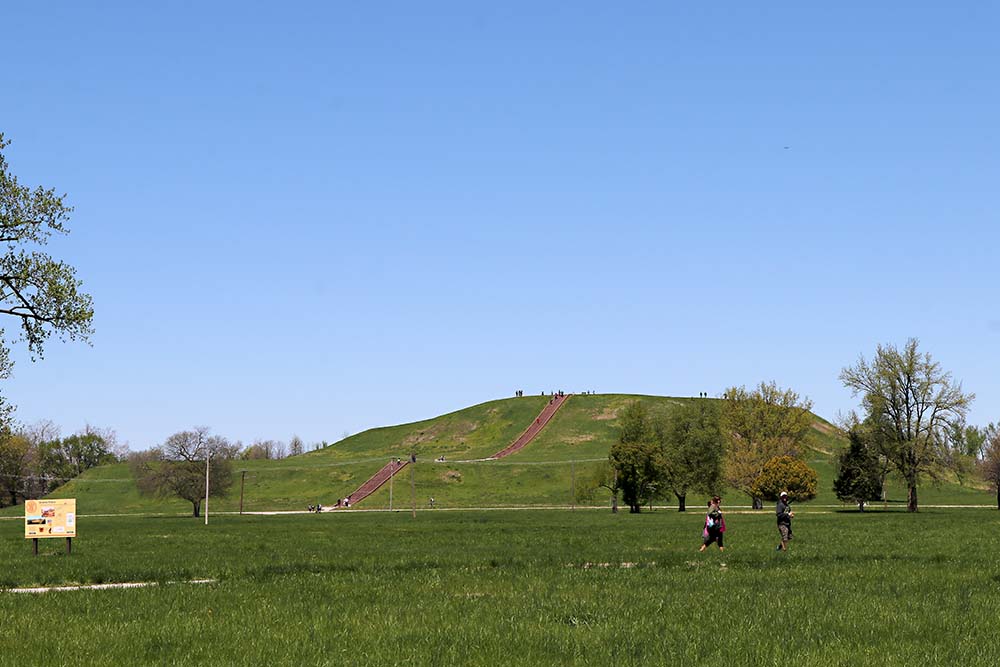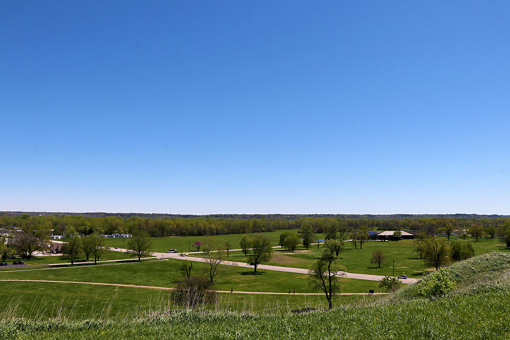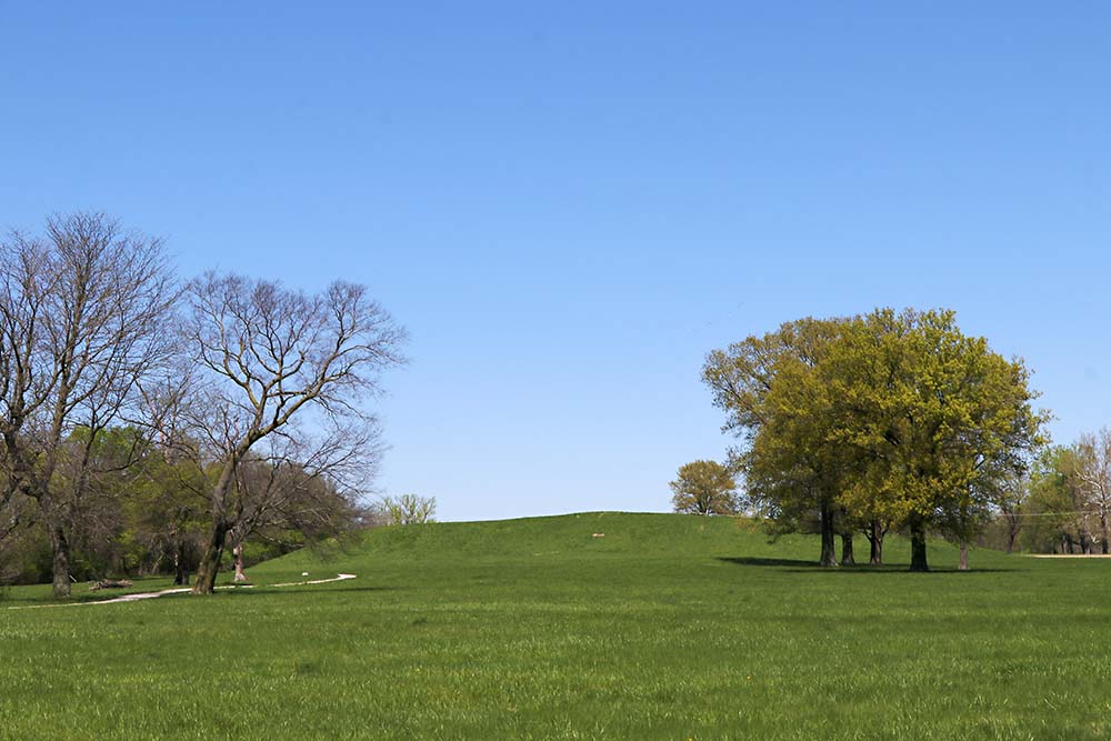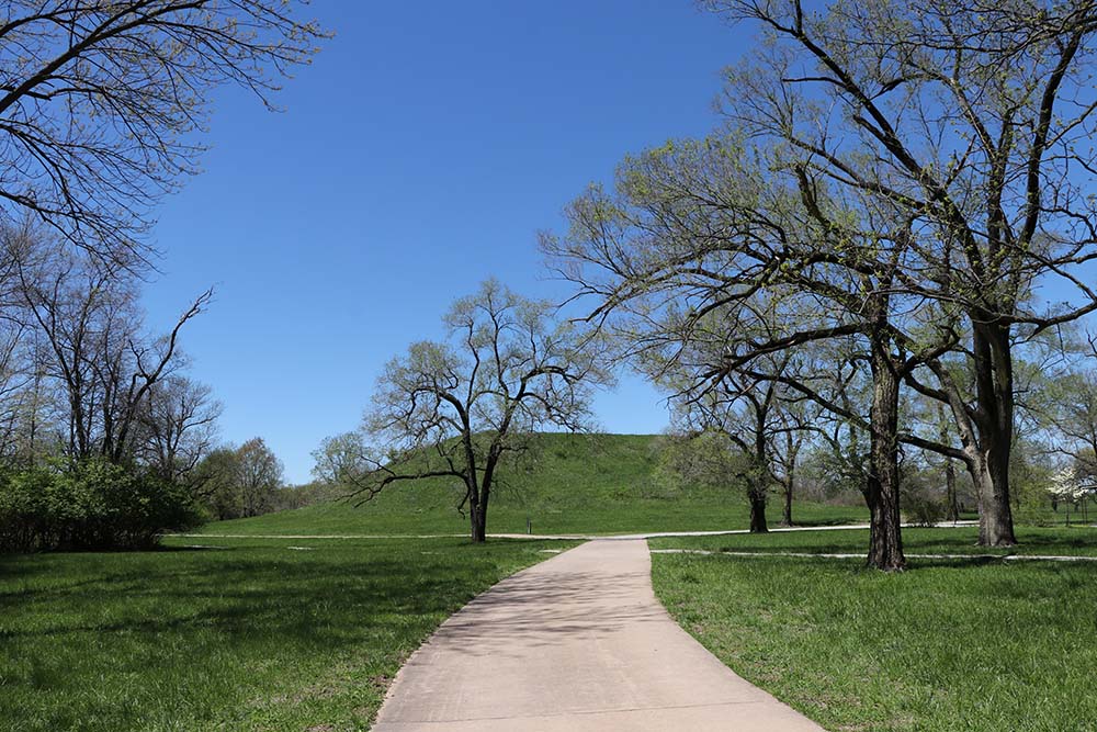 You could spend a long time reading in the museum. Then you take a trip outside and walk the paths to see a variety of mounds of varying types. That is Monks Mound in the distance with other mounds nearby.