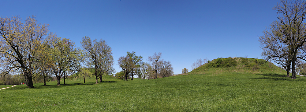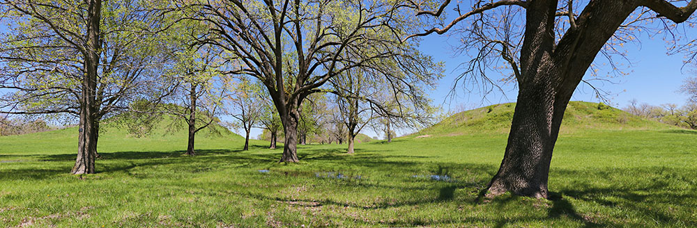 This is a panorama photo of the Twin Mounds.