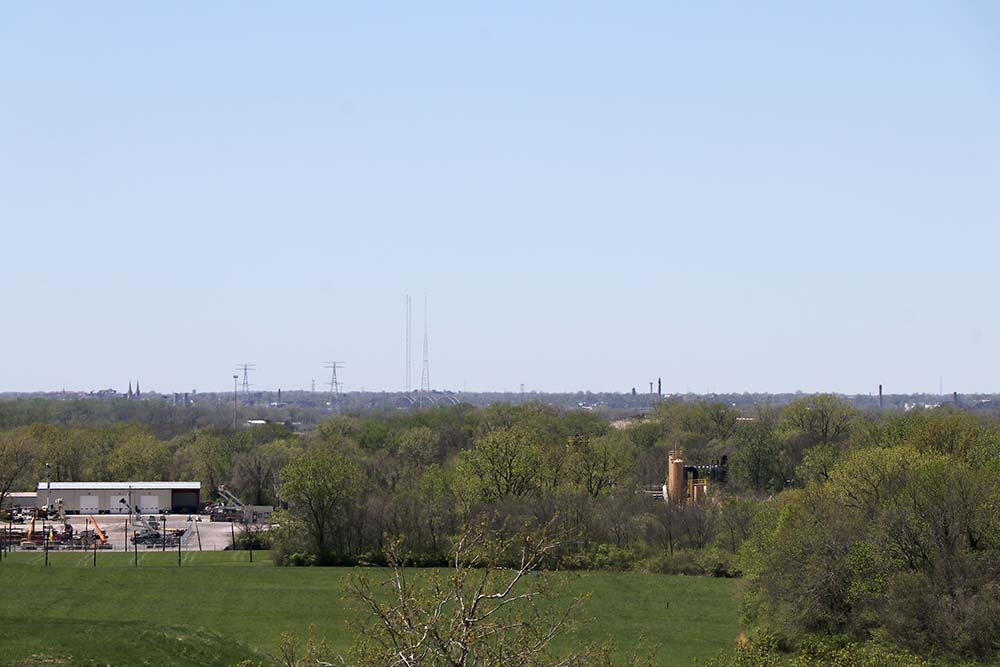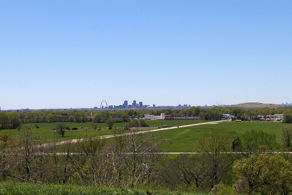 When on top of Monks Mounds the sights in the distance are amazing and there are more concrete blocks with reading information. Here you can spy the arch in downtown St. Louis.