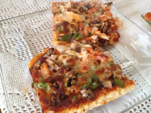 We figured hubby's pizza was probably more calories, with the bacon maybe being more than my veggies, plus he had more meat and cheese. However, mine was more fun!